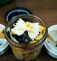 피자치즈 + 로제파스타 소스 + 노란 피망 + 올리브+ 새우 + 또띠아
